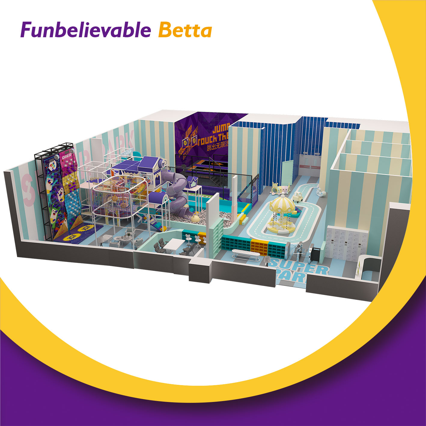 主要游戏元素 | 迷宫区域,攀岩墙,蹦床,彩虹网 |